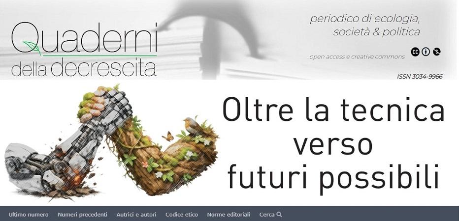 È appena uscito il numero 7 dei Quaderni della decrescita, il quadrimestrale di ecologia, società e politica che è leggibile e scaricabile dal sito quadernidelladecrescita.itUn quadrimestrale on-line che nasce dall’esigenza di immaginare e avviare un nuovo modello di civiltà e…